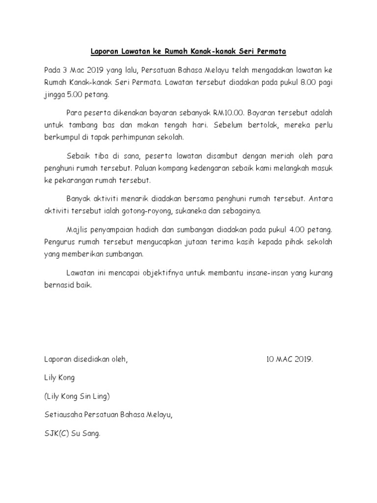 Laporan lawatan ke rumah pelajar jamaliah bt kalbadormohd din tarikh. Contoh kertas kerja lawatan ke rumah orang tua kertas. Pdf karangan laporan pt3 contoh lawatan ke parlimen.